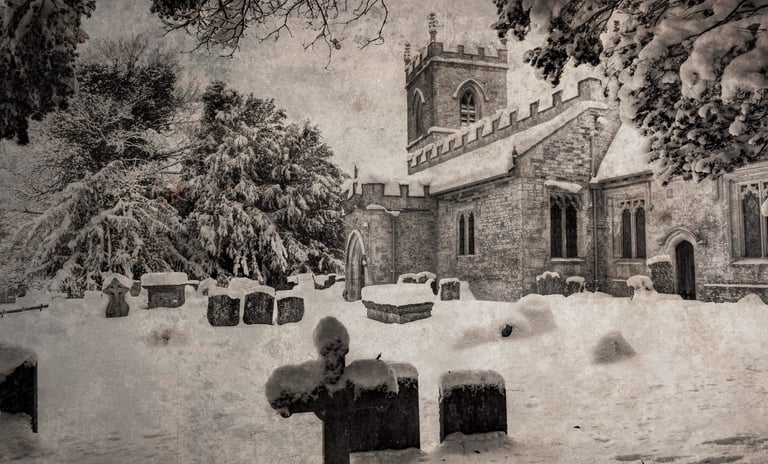 Christmas carolling was a competitive sport between local choirs, as evidenced by the vicar’s listing of their takings compared to others’ in the area. The choir were out faithfully and cheerfully each Christmas in all weathers, raising money for the Church’s Children’s Society. They roamed far and wide, stopping at the ‘big houses’ such as Upton Manor and Loders Court (of course) and anywhere that would give them refreshments – the vicar remarks of 1948 jollifications that ‘they lingered so long over refreshment provided at Matravers and Upton Manor that by the time they had worked back to Shatcombe the audience were mostly in bed’ (p. 4). The several nights of carol singing were traditionally rounded off with ‘with a feast and ghost stories at the big fireplace of the vicarage' (p. 6). The vicar obviously enjoyed his annual ghost story renditions, though he remarks in 1951, ‘The vicar’s vampire story put some of the company to sleep. Or was it the mince pies?’ (p. 37).